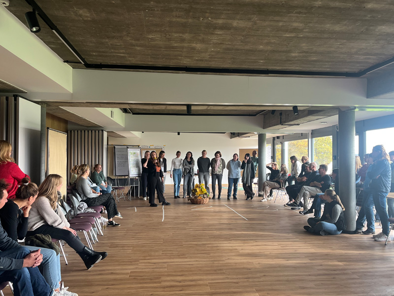 Wer wollte, startete den zweiten Tag mit Yoga, Joggen oder Meditation. Andere starteten einfach etwas später, dafür ausgeruht. Nun ging es ums gemeinsame kreative Wirken, um Werte und Positionierung, aber vor allem darum, miteinander zu sprechen und zu gestalten – in Wort oder Bild, Tanz oder Film, Lego oder Spiel. Die Atmosphäre war gleichzeitig konzentriert und entspannt – vielleicht hatten die Erlebnisse des Vortags einen neuen Zugang zueinander geöffnet. Zum Abschluss teilte die Geschäftsführung, was sie persönlich aus dem Herbstfest mitnehmen, und wagte einen Blick voraus. Viele hörten gebannt zu – ein ereignisreiches Teamevent neigte sich dem Ende zu.